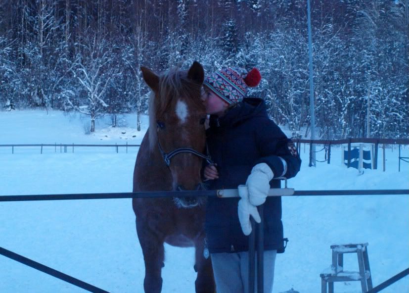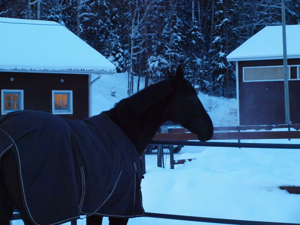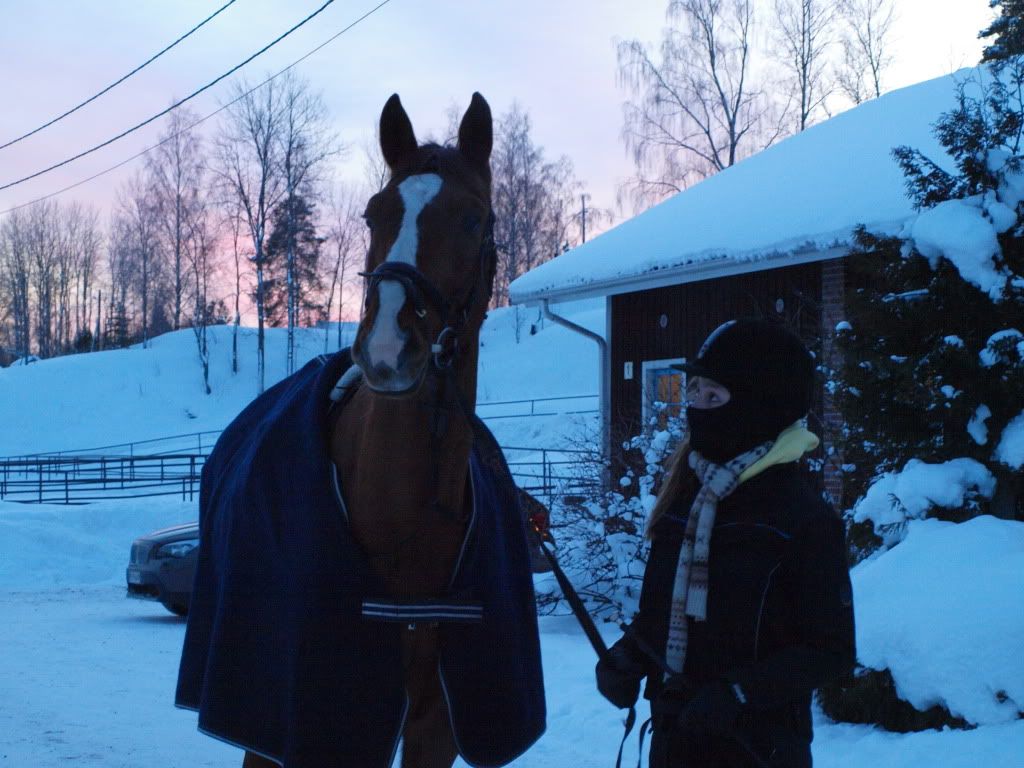 Viimeinkin kokeet on ohi ja on perjantai! Voi viimeinkin ottaa rennosti ja mennä tallille. Olin taluttelemassa Daisyä puolisen tuntia pakkassäässä. Tyttö oli energisellä tuulella. Annoin puurot porkkanoineen taluttelun jälkeen. Muuromonsteri.. Molemmat takaset olivat eilen olleet lämpimät ja vähän turvoksissa. Tänään vaikuttivat onneksi paremmilta. Daisyn hoivaamisen jälkeen harjasin vielä Rion ja annoin pari porkkanaa. Mukavaa perjantai-iltaa ja viikonloppua kaikille!