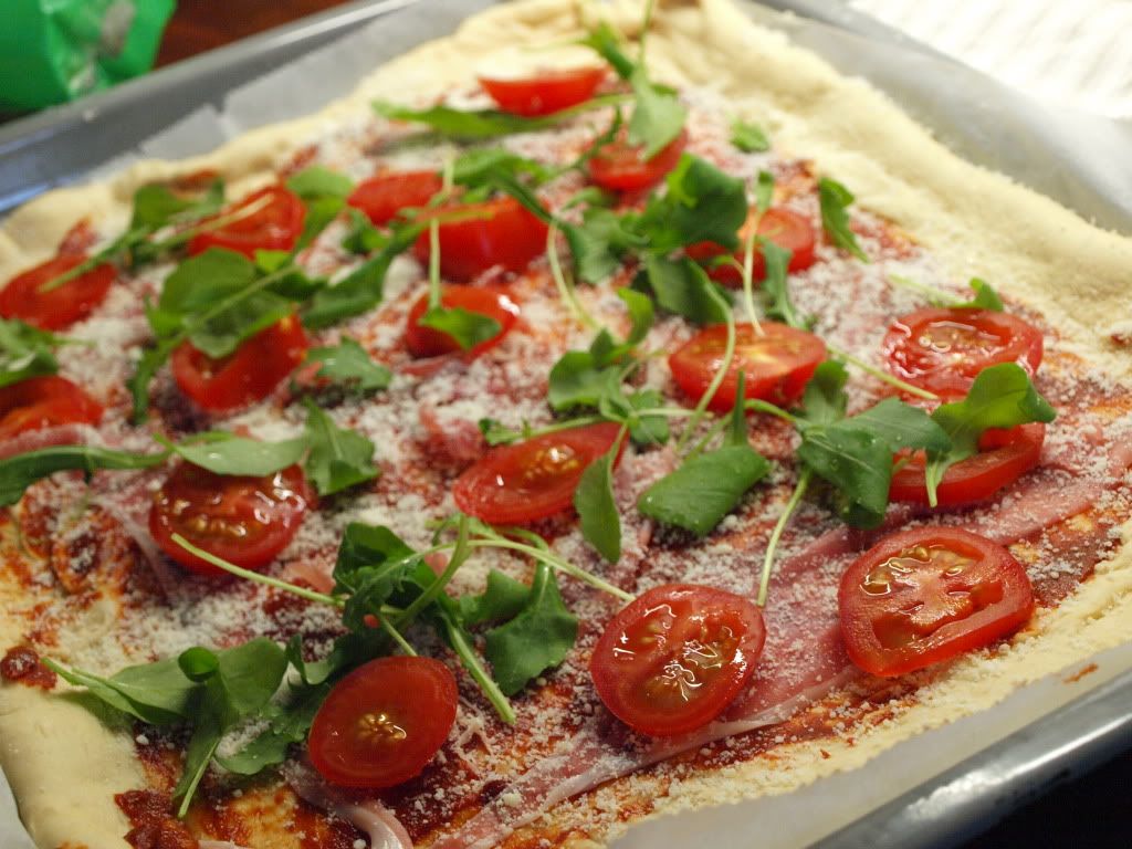 Talleilun jälkeen oli varpaat jäässä ja kova nälkä. Me mentiin Karoliinalle ja tehtiin pizzaa, johon tuli parmankinkkua, parmesaania, mozzarellaa, edamia, tomaattia, rucolaa ja paria eri maustetta. Pizzapohjan kohoamista odotellessa tehtiin herkkupirtelöt maidosta, vanilijajätskistä ja dops-kekseistä. NAM! Herkkupizzaa syödessä katsottiin Never let me go -leffaa, joka on muuten hyvä. Kannattaa katsoa!