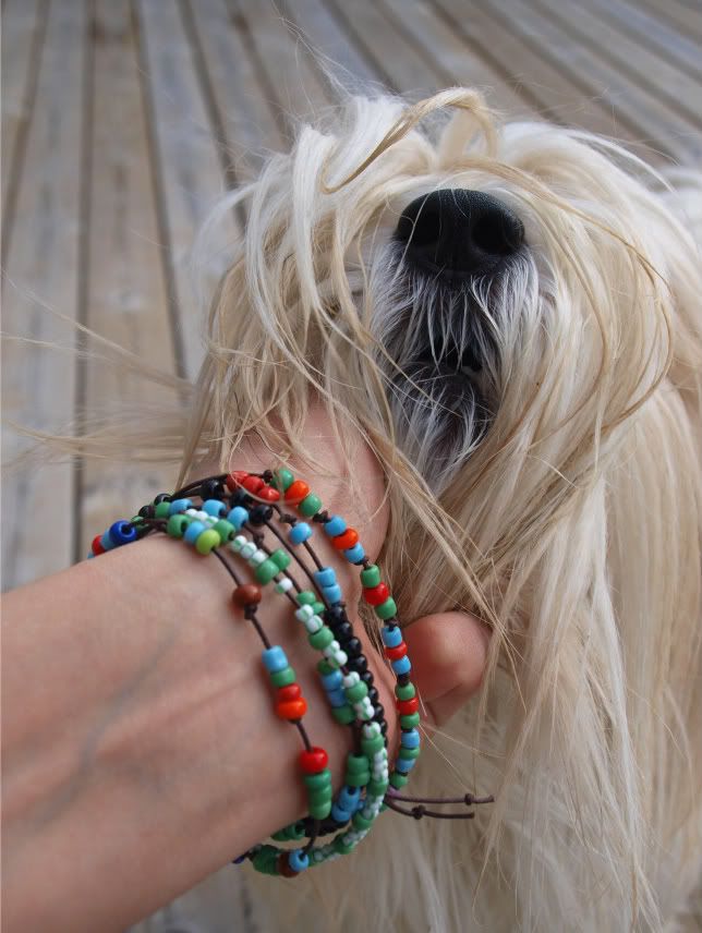 Nahkanyöriä plus värikkäitä helmiä = ihana väriläiskä sini-musta-valkoisen vaatetuksen piristykseksi. Lopun päivää taidan vaan jillailla, kuunnella hyvää musiikkia ja syödä jäätelöä.