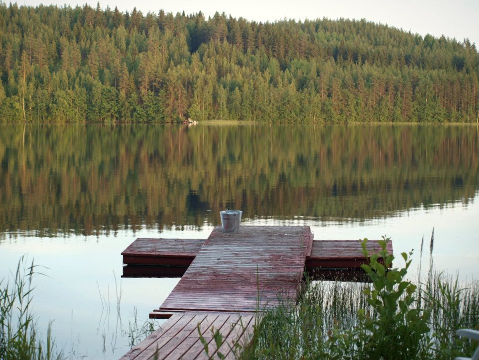 Mökiltä postailen. Istun kuistilla, tulin justiinsa uimasta ja rantasaunasta. Amie makoilee portailla ja naatiskelee, kuten minäkin. Täällä on niin ihanan rauhallista, itikoiden ininää lukuunottamatta.