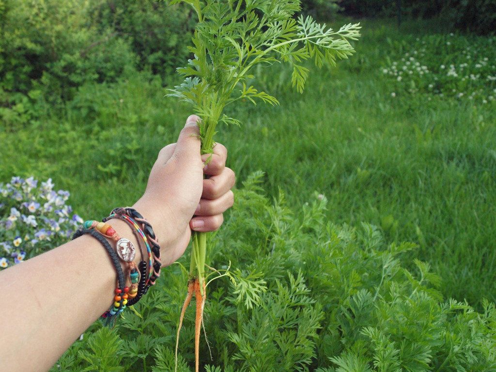 Meidän kukkaruukkuporkkanat on kasvaneet, näitähän voi jo kohta syödä.