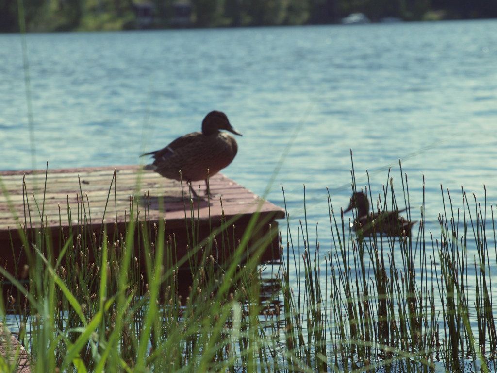 Pian saavuimmekin rannan tuntumaan heinikon poikki. Amie loiskutti kaislikkoon ja pysähtyi lipittämään järvivettä. Itse heitin kengät hietikolle ja lähdin kahlailemaan kohti laituria.